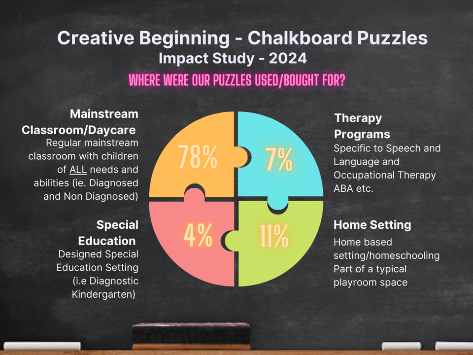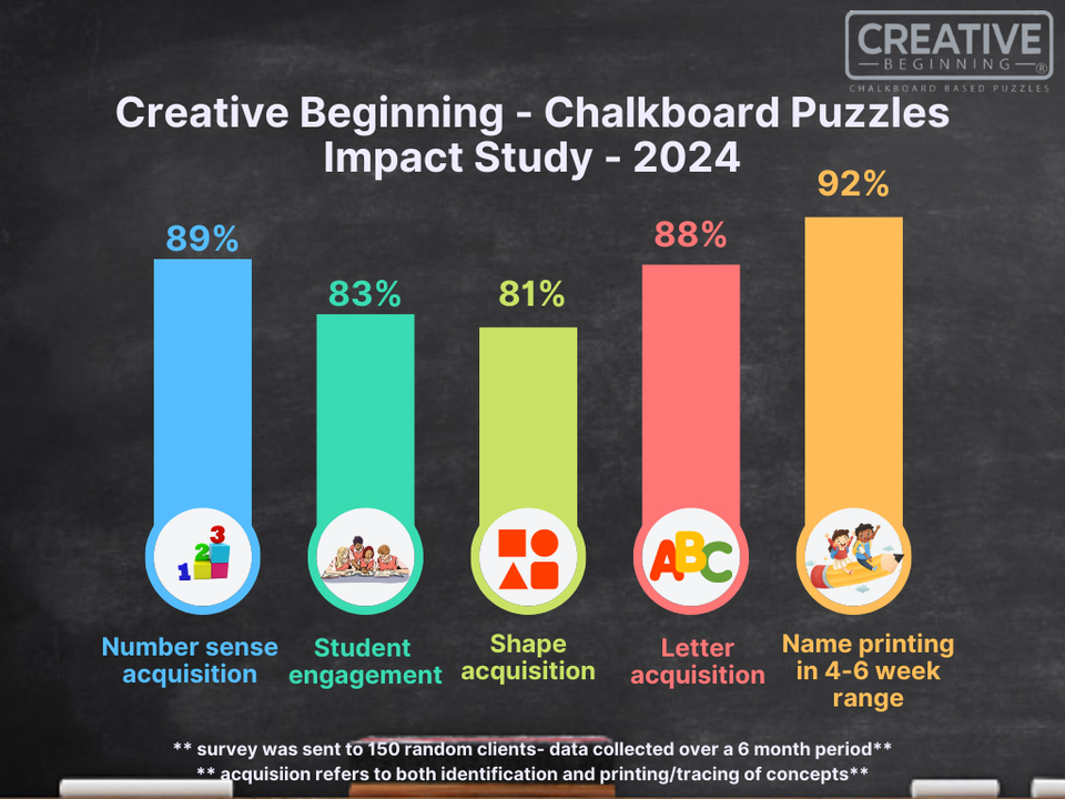 The puzzles were initially created to assist children with fine motor difficulties and have proven effective for various learning needs, including those on the autism spectrum. The combination of indented spaces (no "going out of the lines") and a chalkboard base provides a tactile and visual learning experience that can be particularly beneficial for children requiring specialized educational tools.